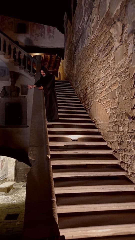 Alfonso Desentre interpreta el papel de «il monaco» , un monje guardián de secretos de distintos momentos en la vida del artista, y asume el reto de acometer intensas y extensas secuencias en la hermosa lengua italiana.